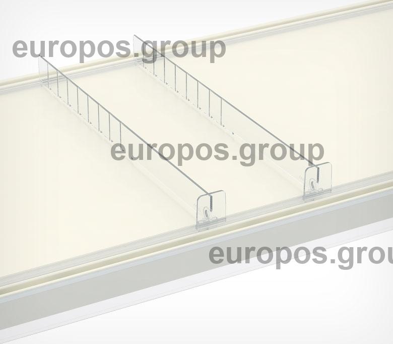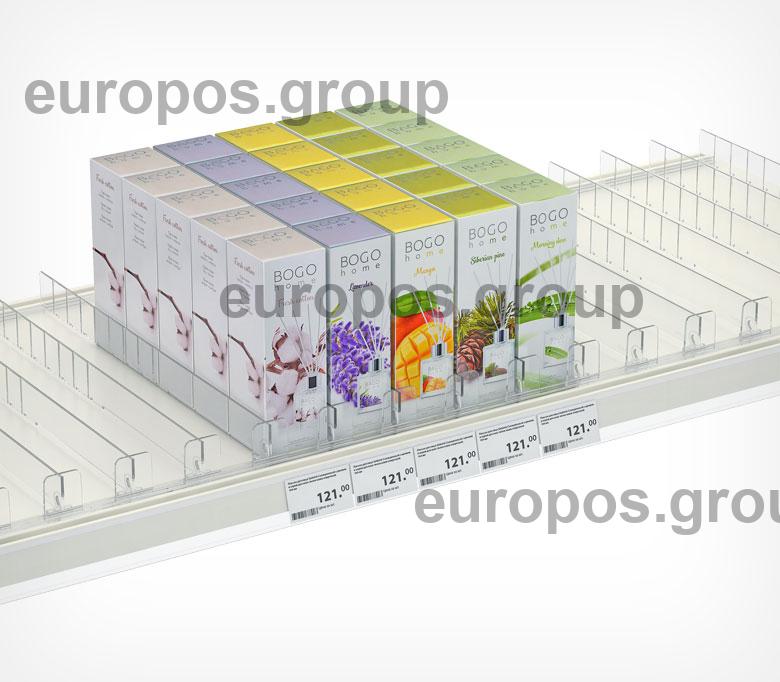 Пластиковый разделитель высотой 30 мм имеет передний Т-ограничитель высотой 35 мм. Идеальное решение для организации выкладки сигарет, лекарств, парфюмерии.