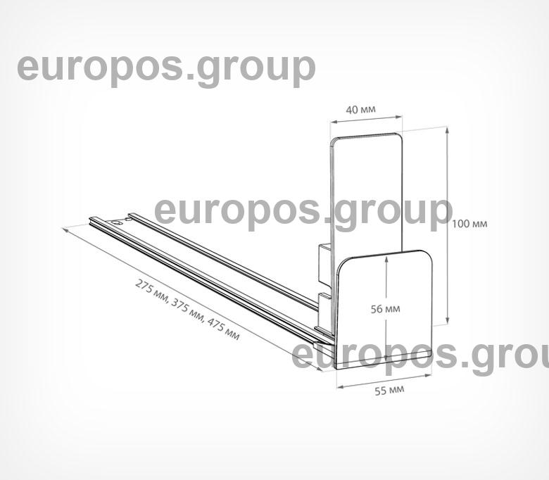 Пружинный толкатель FORTA MAGNA-2 оснащен прямостоящей толкающей поверхностью размером 40х100 мм с передним прямым ограничителем 55х56 мм, что обеспечивает автоматическую подачу товаров к краю полки и дополнительную фиксацию товара в ячейке.