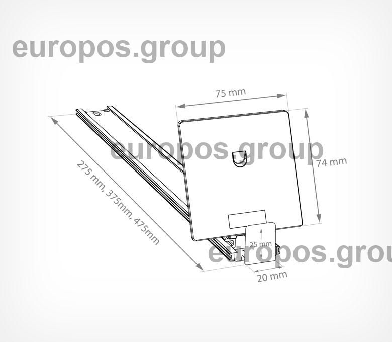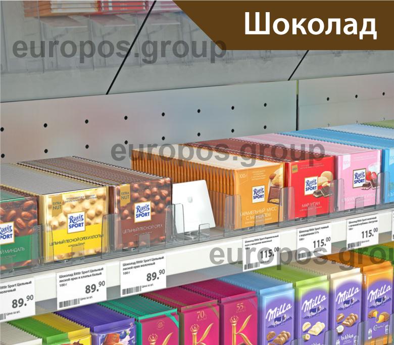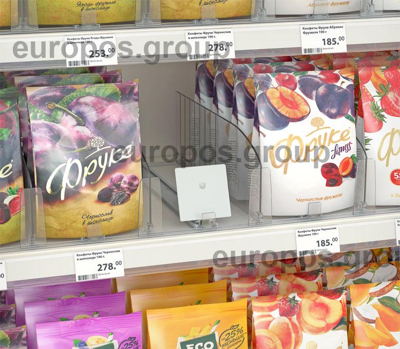 Пружинный толкатель FORTA QUADRA-1 оснащен наклонной толкающей поверхностью размером 75х74 мм и передним ограничителем 20х25 мм, что обеспечивает автоматическую подачу товаров к краю полки и его дополнительную фиксацию в ячейке. Применяется для размещения для невысоких продуктов средней и высокой тяжести, таких как квадратные плитки шоколада и пакетированные конфеты. Толкатель можно использовать с товарами как в устойчивой, так и в неустойчивой упаковке, в сочетании с разделителями с передними ограничителями.