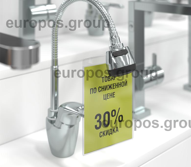 Карман из мягкого ПВХ с прорезью для вставки ценника с верхней стороны. Рекомендуется использовать как ценникодержатель в комплекте с самоклеящимся держателем и соединительным хомутиком.