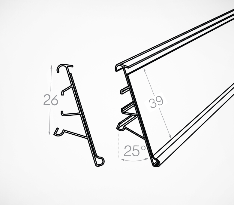 Ценникодержатель LF предназначен для размещения ценников на полках холодильного оборудования. Он применяется в холодильных витринах Linde, где устанавливается с помощью клипс LF-CLIP, которые вставляются в специальные отверстия на торцевом профиле полок. Высота ценникодержателя 39 мм идеально подходит для большинства стандартных ценников.
