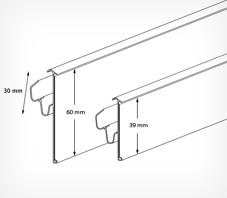 Для установки ценников высотой 39, 52 и 60 мм.