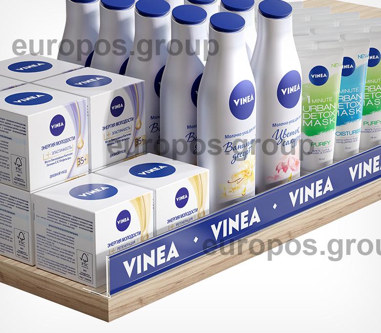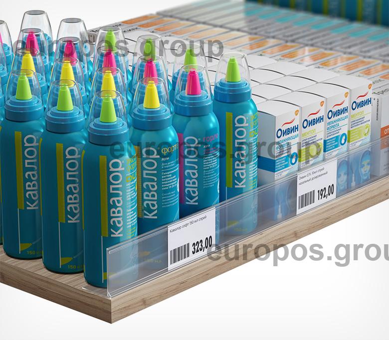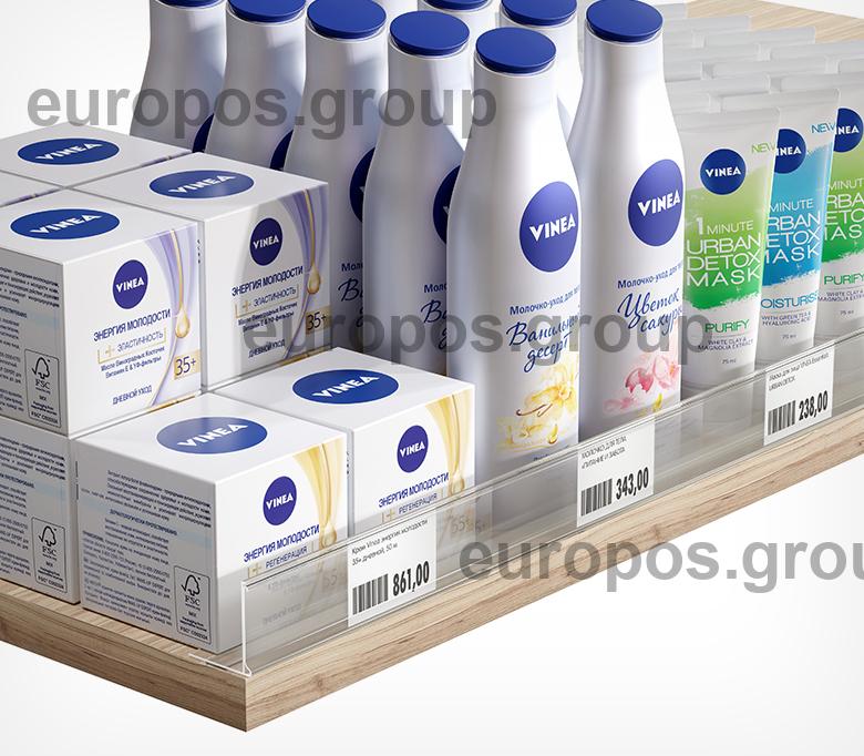 Ценникодержатель полочный самоклеящийся с функцией ограничителя используется для удобного и надежного размещения ценников и брендированных вставок на полках. Применяется в магазинах косметики, аптеках, а также в торговых точках формата Drogerie, где важно обеспечить аккуратное и функциональное оформление товаров. Данный ценникодержатель предназначен для предотвращения падения товаров с полки благодаря наличию ограничителя.