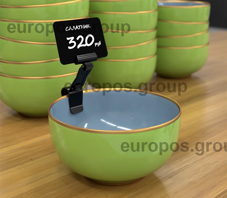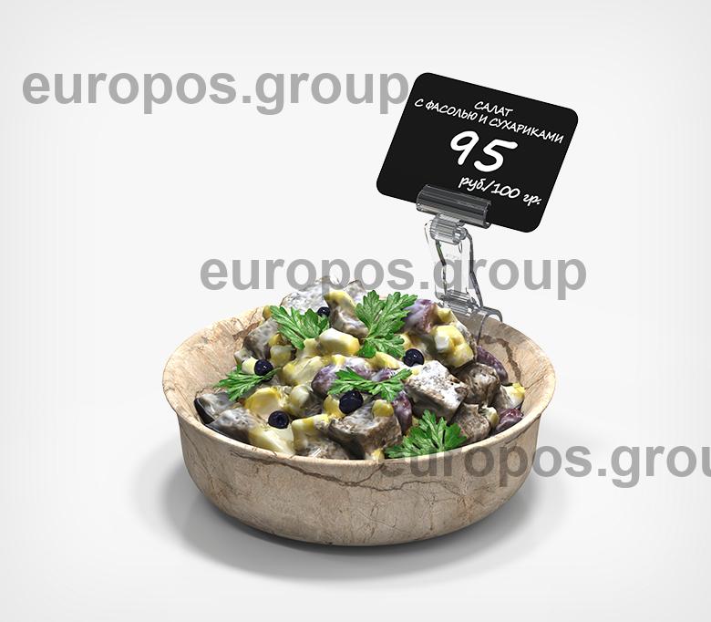 Комплект ДЕЛИ на ножке высотой 40 мм для крепления на край посуды. Данное изделие является самым популярным среди готовых ДЕЛИ-систем. Используется для крепления ценников на гастроёмкости, в качестве которых чаще всего выступают чаши салатниц.