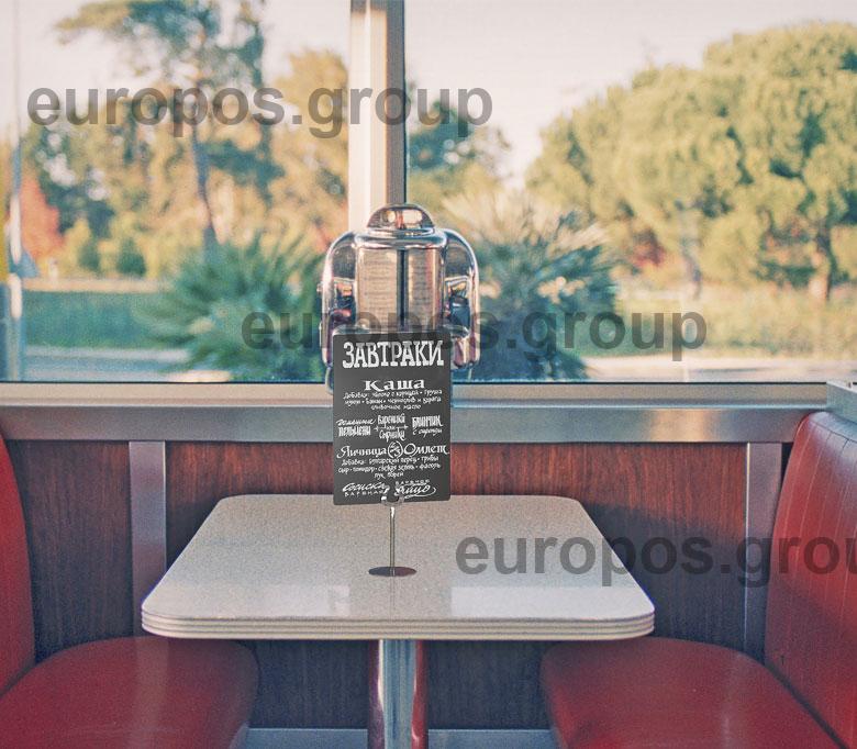 Применяется в кофейнях, кафе и гостиничных ресторанах на гостевых столиках с сезонным меню, спец.предложениями или номерами столов.