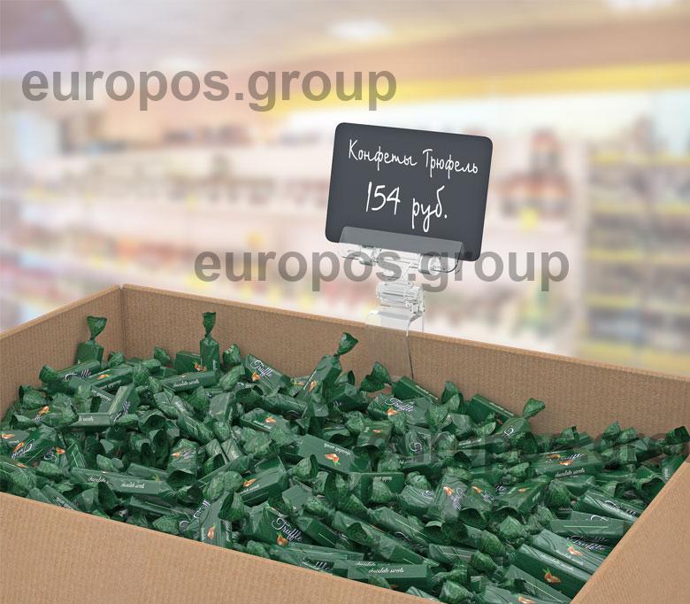 Универсальный держатель CLIP-GRIP с креплением на клипсе идеально справляется с демонстрацией ценников и рекламных топперов на краях и деталях оборудования, корзин, коробок и другой демонстрационной тары, а также полках. В качестве ценника используются меловые таблички, бумажные вставки и другие информационные носители толщиной до 6 мм. Механизм держателя позволяет менять угол наклона ценника, что улучшает демонстрацию информации при использовании на разной высоте от уровня глаз покупателя.