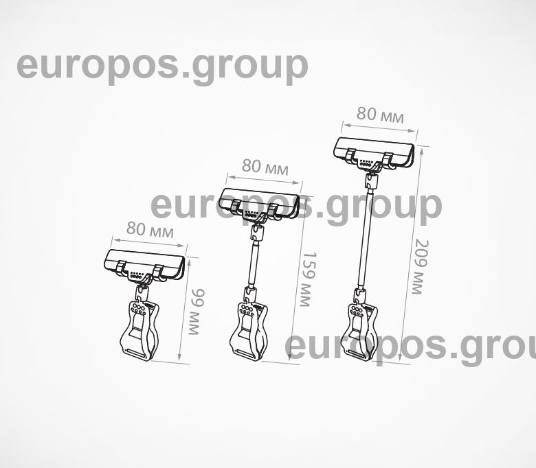 Крепится на торец полки, корзину толщиной до 25 мм. При креплении на трубу - максимальный Ø трубы - 32 мм. Толщина ценника или таблички - до 6 мм. Ширина держателя ценника - 80 мм. Три вариант высоты ножки - 0, 50, 100 мм.