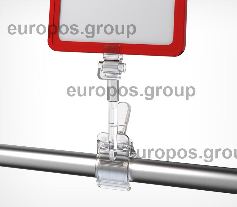 Универсальный держатель-прищепка для крепления пластиковых рамок на различных видах поверхностей. Шарнирное соединение обеспечивает возможность регулировки угла наклона и положения рамки.