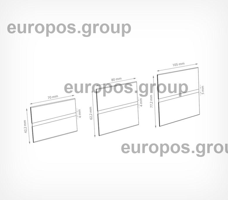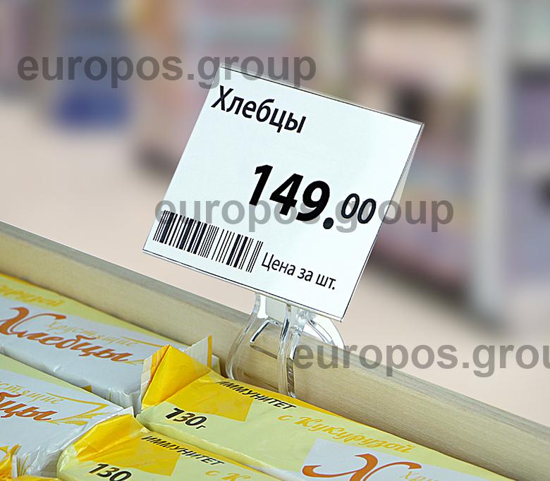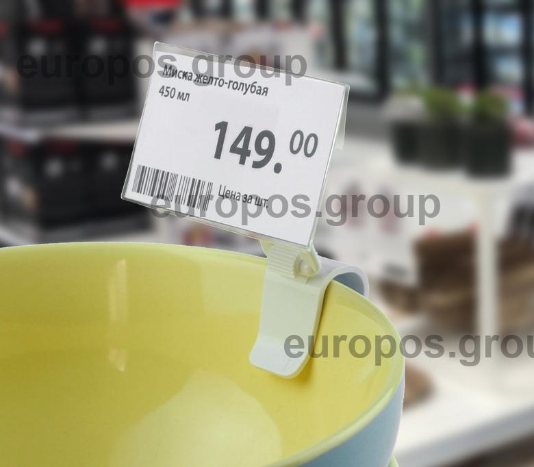 Изготовлены методом термогибки из ПЭТ, толщиной 0,3 мм. Крепятся на ценникодержатели на прищепках или ДЕЛИ систему на один из задних загибов.