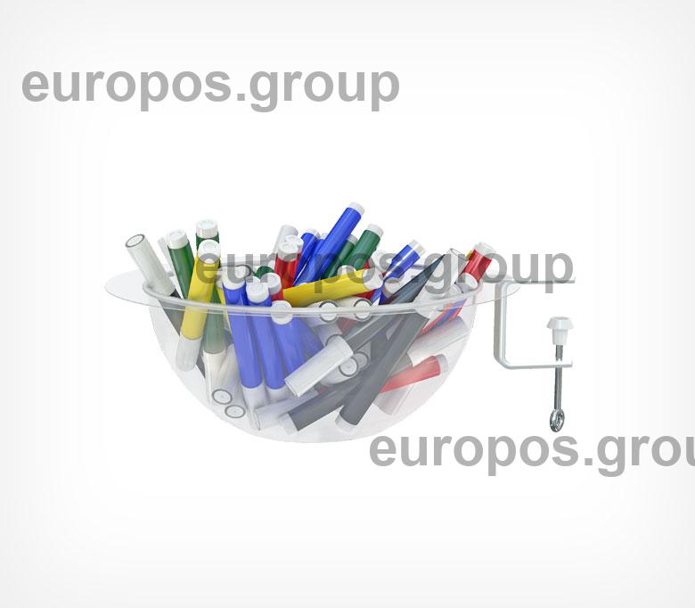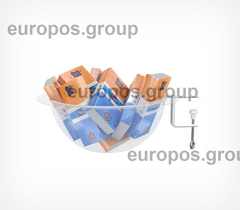 Дисплей-чаша из прозрачного пластика для выкладки мелкого товара состоит из двух частей: из верхней и нижней секций, продающиеся отдельно. Плоское дно нижней секции дисплея позволяет устанавливать его на полку или использовать вместе c держателем на струбцине BOWL-HOLDER. Верхняя секция исполняет роль крышки с отверстием, удобным для использования. Струбцина BOWL-HOLDER приобретается отдельно.