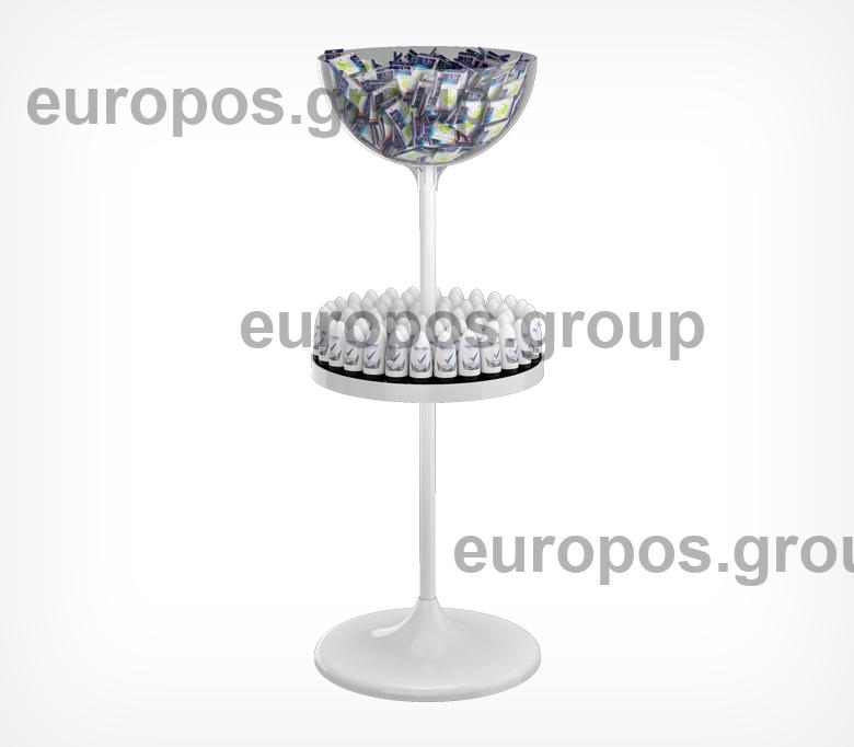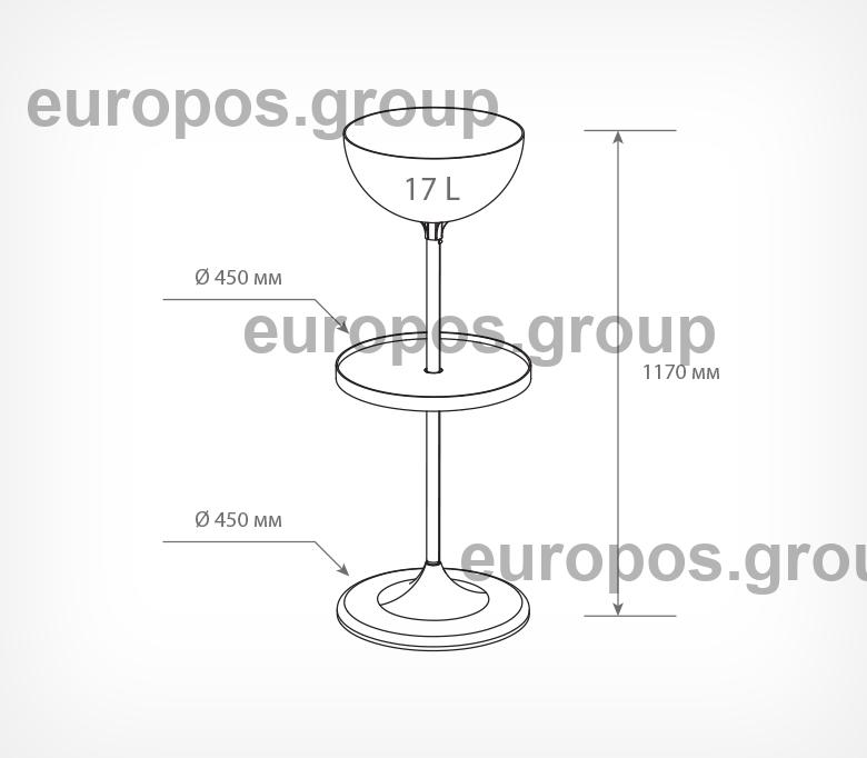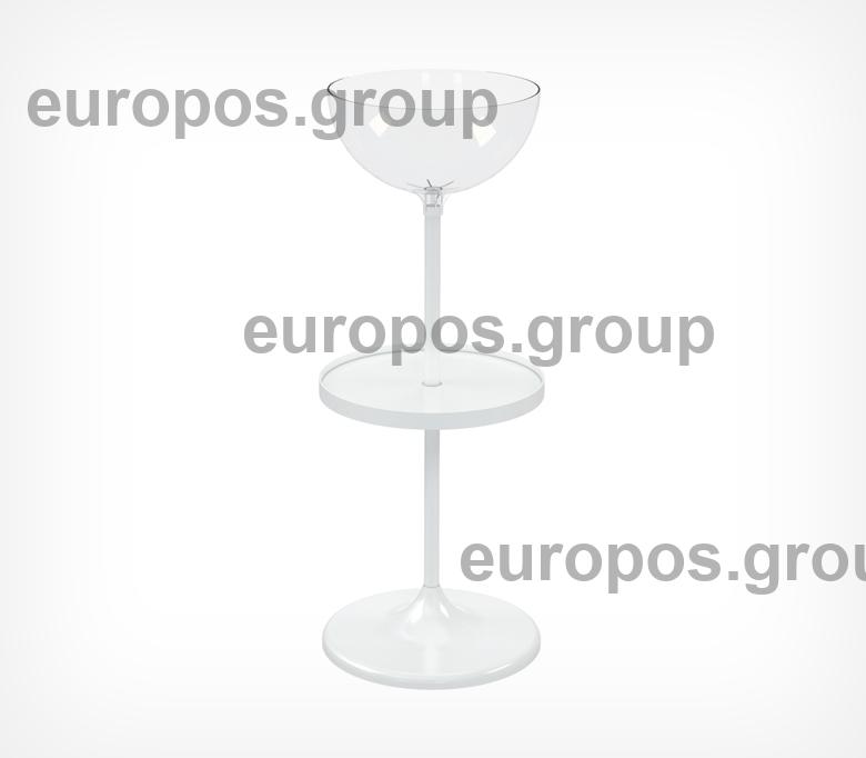 Предназначен для выкладки продовольственных и непродовольственных товаров в компактной упаковке. Дисплей UNIBOWL-17-RX позволяет делать выкладку товаров в неустойчивой упаковке в чаше и в стандартной упаковке на полке. Дисплей состоит из нескольких частей, которые легко собираются между собой без использования инструмента (см. схему): пластиковое основание, труба длиной 520 мм, труба - 410 мм, пластиковая полка, пластиковая прозрачная чаша объемом 17 литров, заглушка, защищающая полость трубы.