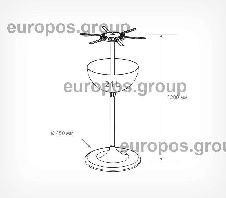 Дисплей UNIBOWL-24-HP-6 предназначен для выкладки продовольственных и непродовольственных товаров в компактной и неустойчивой упаковке в чаше и в упаковке с широкой петлей (европетля) для подвешивания на крючках. Состоит из нескольких частей, которые легко собираются между собой без использования инструмента (см. схему): пластиковое основание, труба длиной 520 мм, труба - 410 мм, пластиковая прозрачная чаша объемом 24 литра, пластиковый держатель с 6 крючками, заглушка, защищающая полость трубы. В держатель можно устанавливать до 12 крючков. Дополнительные крючки приобретаются отдельно.
