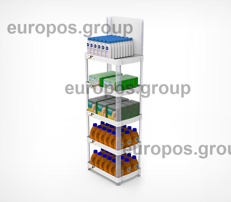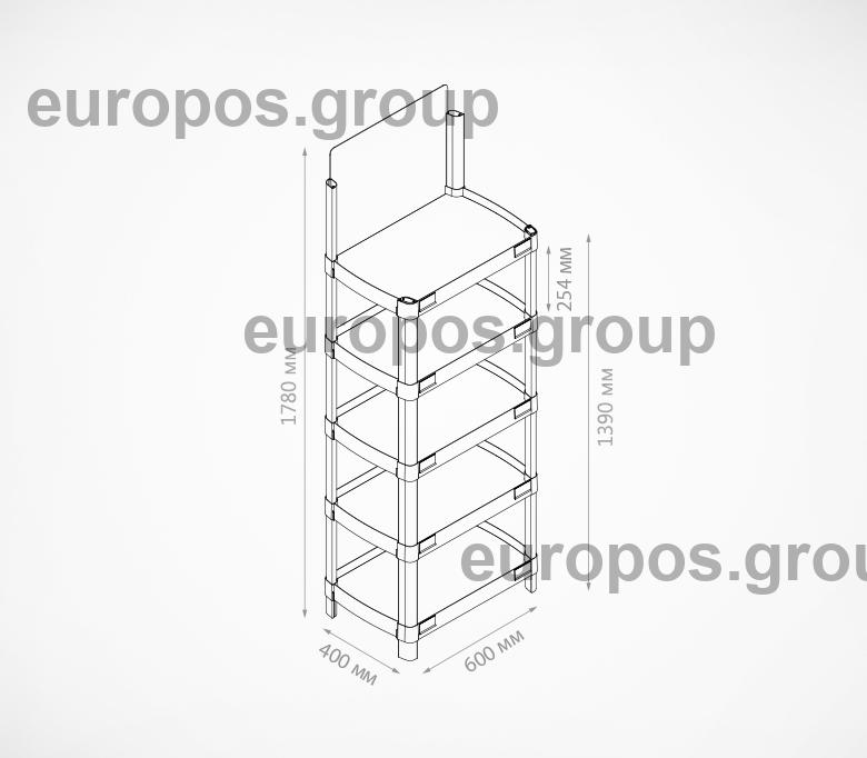 Пластиковый дисплей стеллаж из 5 полок с топером. Позволяет организовать дополнительную выкладку товара, оформить промо акцию или распродажу. Конструкция и размеры рассчитаны таким образом чтобы подходить для любых видов товаров. Дисплей выполнен из легкого и прочного пластика. Поставляется в индивидуальной упаковке.