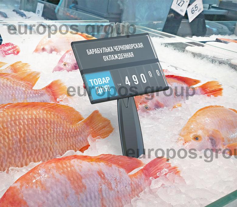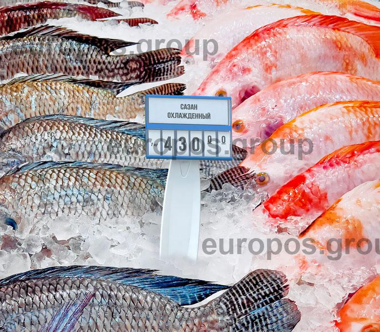 Идеально подходит для использования в отделах с рыбой и морепродуктами. Отличный вариант для обозначения цены продуктов, расположенных на подушке из льда.