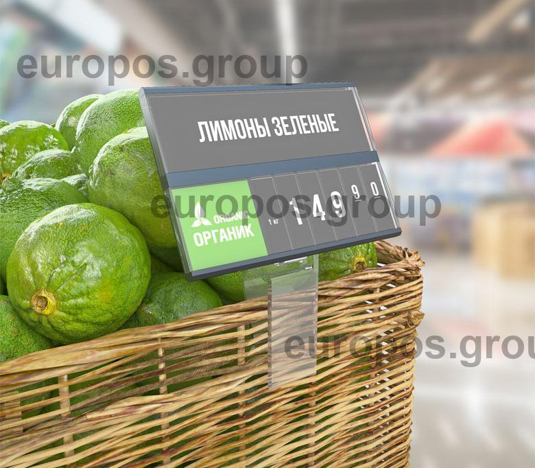 Прозрачная клипса с держателем для кассет с регулируемым углом наклона крепится на край коробки или другой тары, полки толщиной до 20 мм. Обеспечивает дискретную регулировку угла наклона кассеты в диапазоне 180˚.