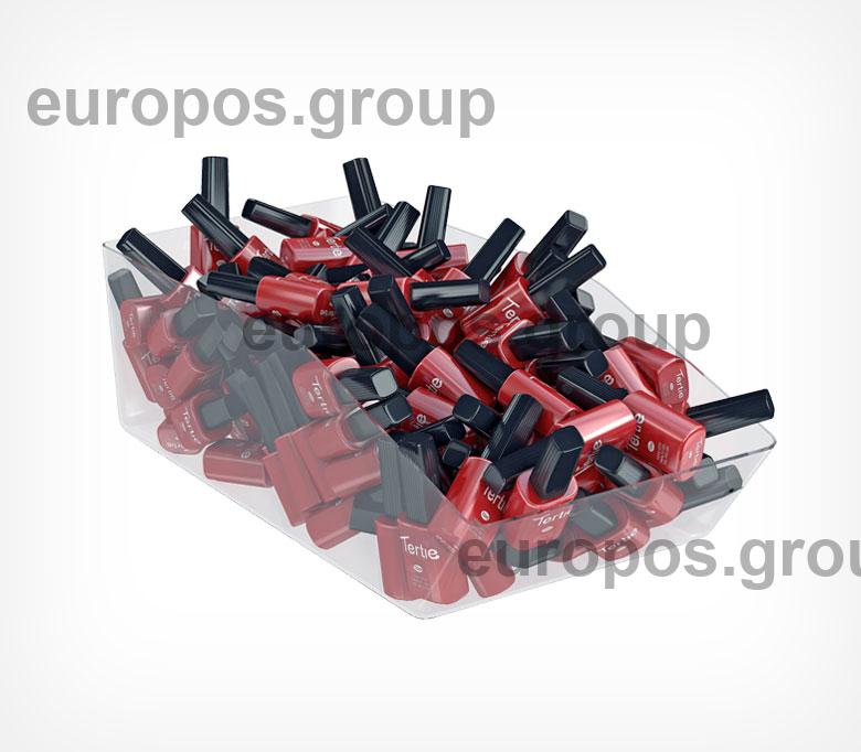 Универсальный малый накопитель для выкладки сыпучих или мелких товаров – оптимальное решение для магазинов формата супермаркет с продажей весовых продуктов, аптек и косметических магазинов в формате самообслуживания и других магазинов, сталкивающихся с выкладкой мелких товаров. Легкая очистка благодаря закругленным углам.