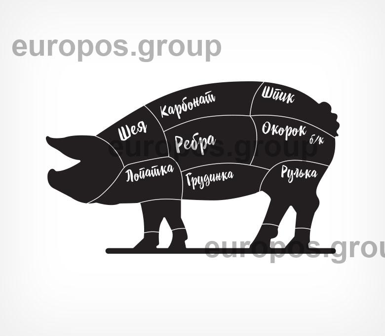 Черная фигурная табличка в форме хрюшки с напечатанными наименованиями товаров. Формат А3. Выполнена из вспененного ПВХ 5 мм. Цены можно писать мелом или маркером и стирать надписи влажной губкой. Идеально подойдет в мясные отделы. Не предназначена для использования с деревянной подставкой А4 BB STAND.