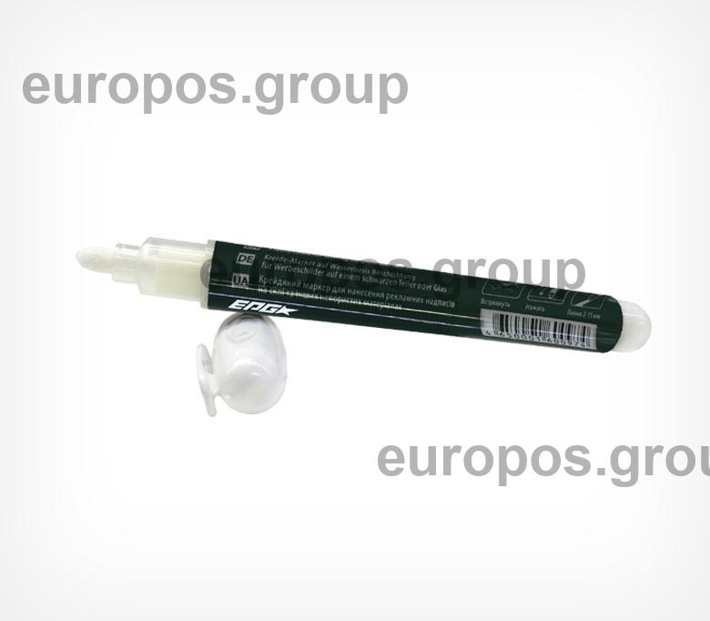 Белый меловой маркер на водной основе POSMARKER для нанесения надписей на табличках, стекле, зеркале, металле, пластике, цветочных горшках и любых других не впитывающих поверхностях. Полностью высыхает за 3-5 минут, стирается влажной салфеткой. Подходит для использования в помещении.