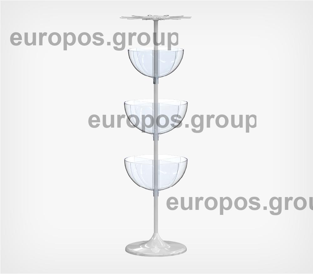 Дисплей с тремя чашами (24-24-17) и держателем, 12 крючков с разделителями