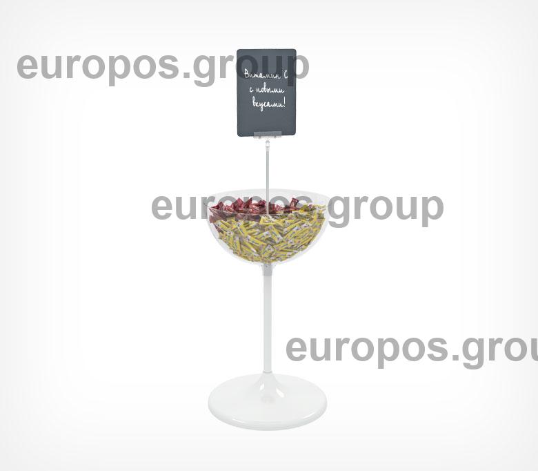 Дисплей UNIBOWL 24 обладает большим объемом чаши по сравнению с чашей дисплея UNIBOWL 17 при том же диаметре напольного основания. Больший объем чаши позволяет увеличить размеры выкладки товара или организовать выкладку товаров средних размеров.