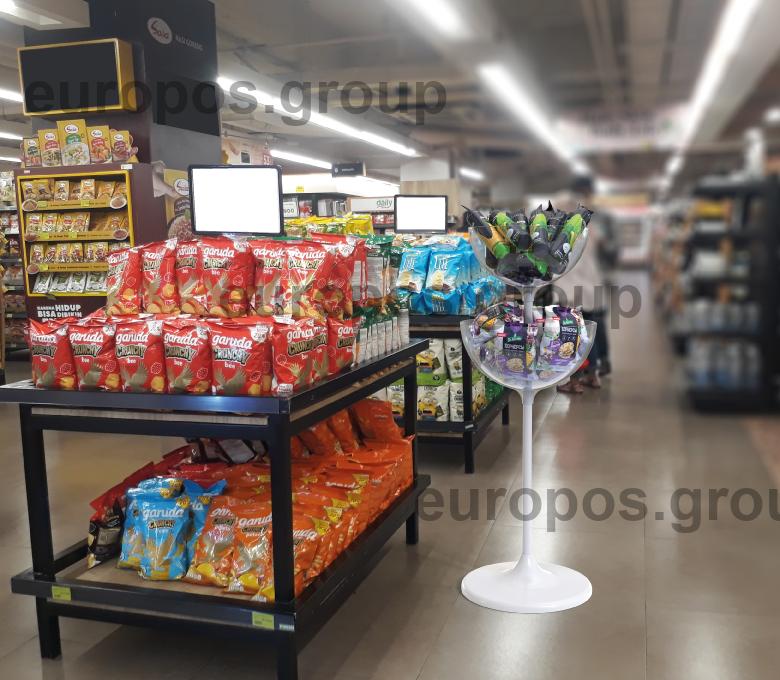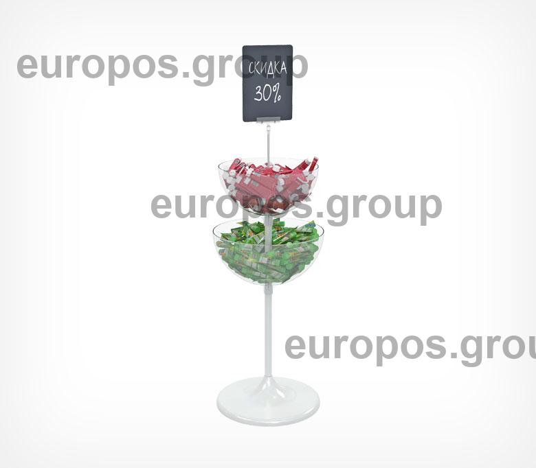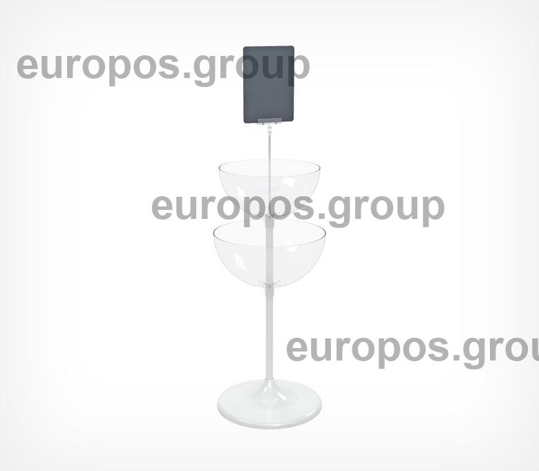 Двухуровневый дисплей UNIBOWL-TOWER состоит сразу из двух чаш разных объемов. Благодаря этому дисплей позволяет делать выкладку сразу двух товаров и ещё более эффективно использовать торговую площадь, увеличивая продажи.