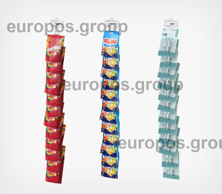 Идеально подходит для размещения продукции с высоким импульсным спросом, такой как сухарики, чипсы, мармеладки, жевательные конфеты и батарейки.
