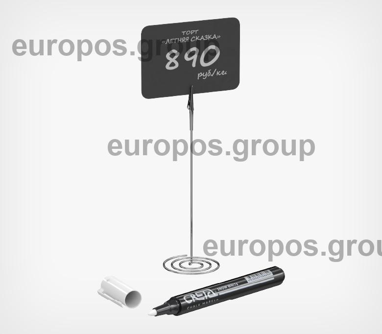 Готовый набор предназначен для эффективного и многоразового размещения информации и ценников в магазинах, ресторанах, кафе, пекарнях и других заведениях. В состав набора входят металлические держатели-зажимы на спиральном основании, черные таблички формата А8 и белый меловой маркер, который легко смывается водой.