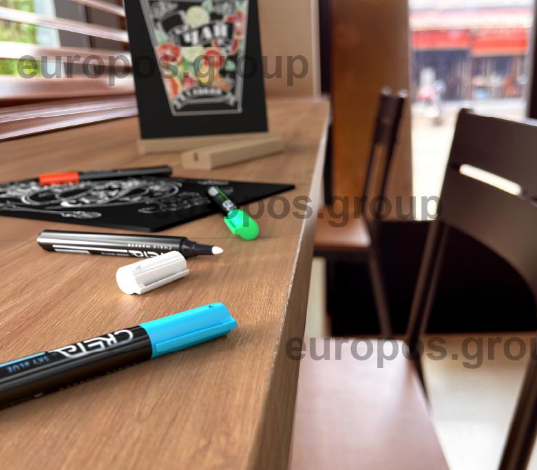 Набор из 6 цветных меловых маркеров предназначен для нанесения надписей на табличках, стекле, зеркале, металле, цветочных горшках и любых других невпитывающих поверхностях. Надписи легко смываются водой. В состав набора входят маркеры шести цветов: белый, желтый, зеленый, розовый, оранжевый, голубой.