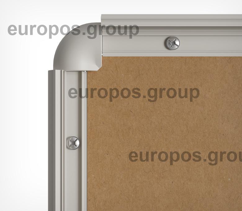 Два варианта рамок: с прямоугольными и закругленными краями. В комплект входит защитный антибликовый экран 0,3 мм и крепеж. Материал задней стенки - оргалит. Стандартные форматы - А1, A2, A3, А4.