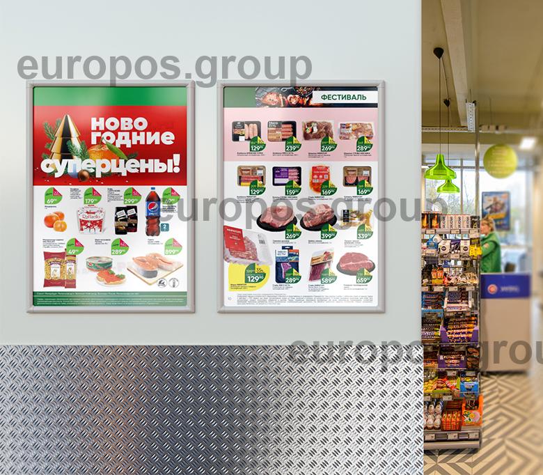 Пластиковая клик-рама PCF-25 с защелкивающимся профилем шириной 25 мм. Оптимальный выбор для размещения рекламной информации, информации о товарах, акциях, услугах, постеров.