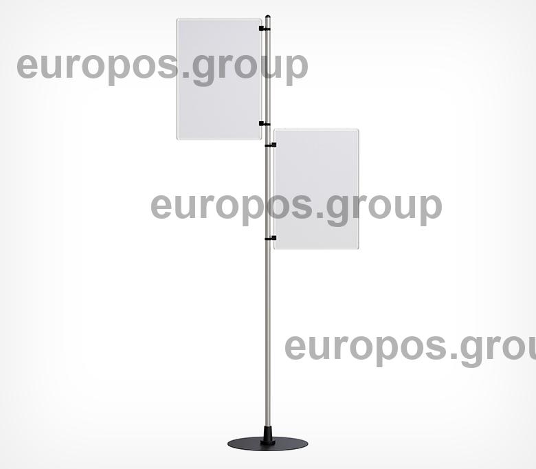 Стойка укомплектована двумя прозрачными рамками PF А3 формата. Легкая замена печатных носителей и возможность установки двусторонних печатных вставок.