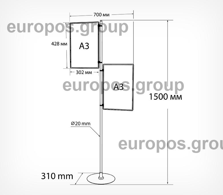 Рекламная стойка имеет устойчивое основание. Высота стойки 1500 мм.