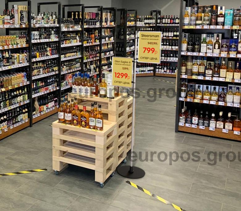 Стойка рекламная фиксированной высоты применяется в зонах распродаж, «островных» и паллетных выкладках товара для привлечения внимания к акционной, рекламной и любой другой информации.