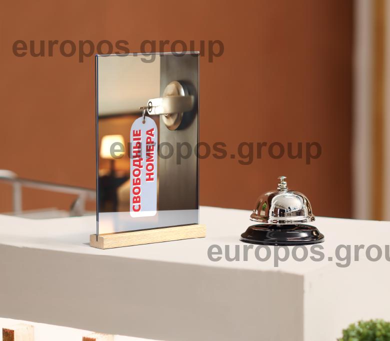 Рекламный тейбл-тент формата А4 на деревянном основании предназначен для эффективного размещения информации об акциях и специальных предложениях. Широко применяется в заведениях сегмента HoReCa, офисах, банках и магазинах для привлечения внимания клиентов к размещенной информации, способствует увеличению продаж и улучшению обслуживания. Функциональный дизайн тейбл-тента делает его идеальным выбором для бизнеса. Удобная установка акрилового кармана, быстрая замена печатной вставки.