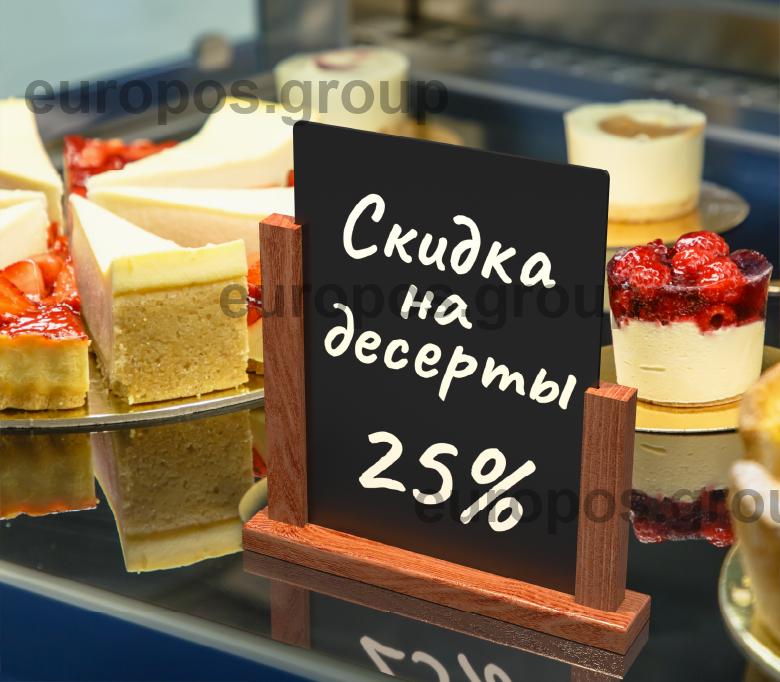 Тейбл-тент с деревянной подставкой и меловой доской А4 формата из вспененного ПВХ толщиной 3 мм используется для создания оригинальных ценников и рекламных объявлений, а также любых других информационных сообщений. Применяется в различных заведениях, таких как, магазины, кафе, бары и рестораны.