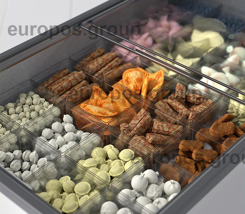 Контейнер ICEBOX специально разработан для зонирования холодильных бонет, позволяя вам создавать отдельные секции для весовых и фасованных товаров. Изготовленный из пищевого, морозостойкого и ударопрочного пластика (поликарбоната), ICEBOX гарантирует долгий срок службы и безопасное хранение товаров. Благодаря универсальному размеру, контейнер подходит для большинства холодильников.