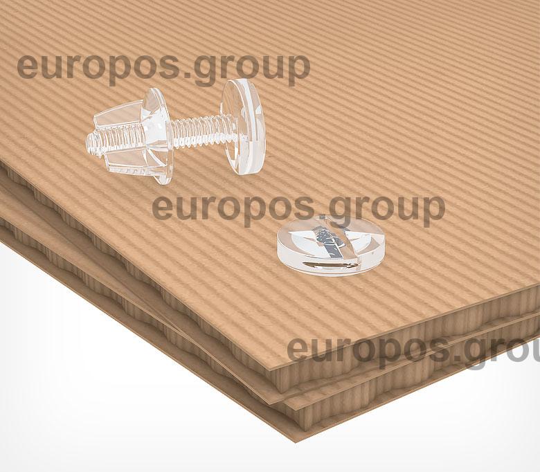 Пластиковый нажимной винт с гайкой CLICK SCREW служит для сборки рекламных конструкций и POS–материалов. Гайка защелкивается одним нажатием, а специальная конструкция винта не повреждает резьбу на гайке при защелкивании и имеет резьбу для откручивания, что позволяет использовать её многократно. Данный механизм CLICK SCREW значительно ускоряет сборку конструкций, сохраняя возможность разобрать её в случае необходимости.