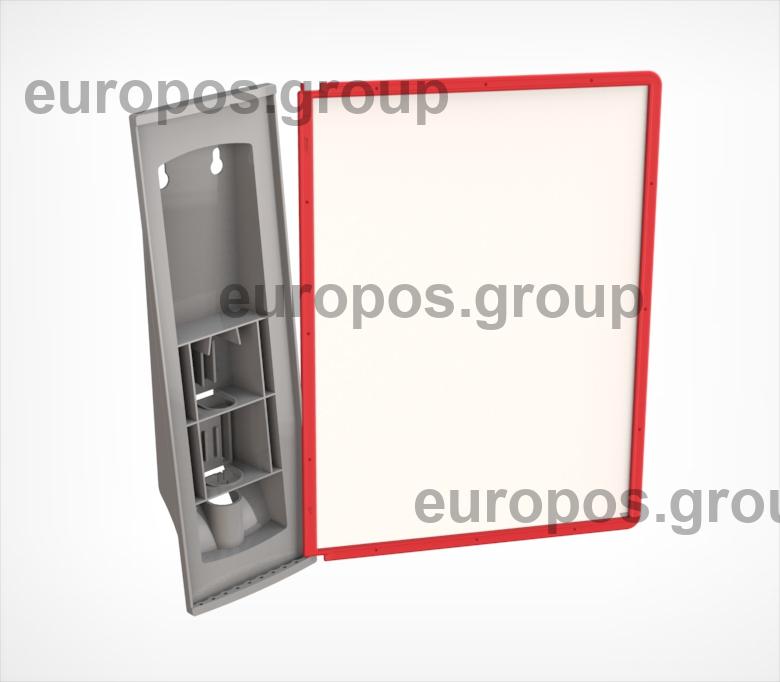 Основание настенной перекидной системы для 10 рамок DATAFRAME формата А4 разных цветов. Настенный держатель изготовлен из высококачественного пластика, имеет два отверстия «замочная скважина» для крепления. Форма держателя обеспечивает небольшой угол наклона рамки относительно стены.