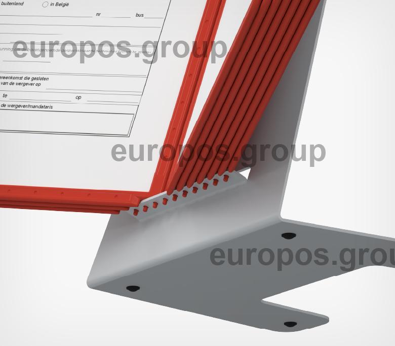 Основание для настольной перекидной системы DATALINE-ECO на 10 рамок DATAFRAME формата А4. Угол наклона держателя плоскости стола - 70°.