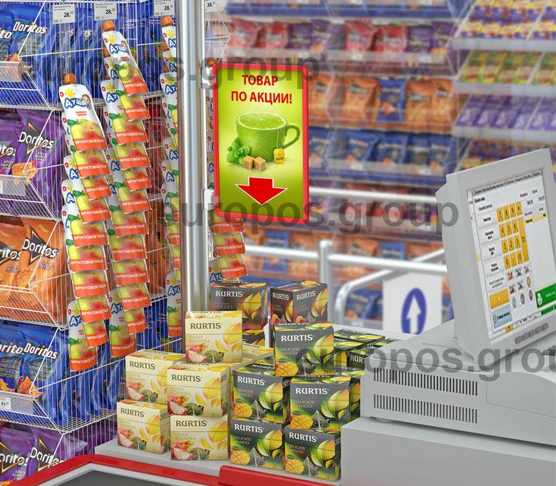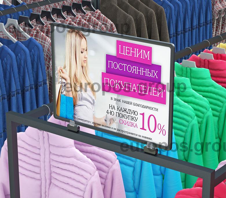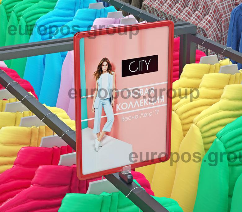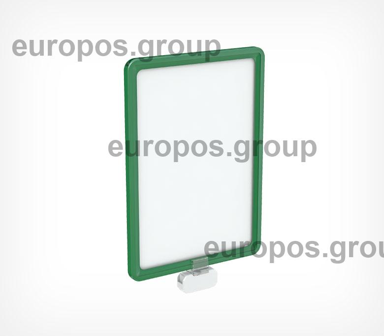 Захват рамки может поворачиваться на 90° по отношению к держателю, что позволяет менять расположение информационного носителя по отношению к поверхности размещения.