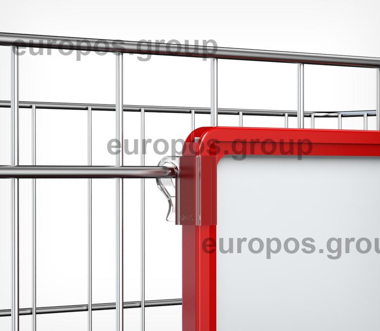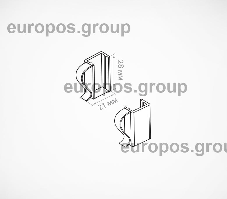 Клипса для крепления рамок на проволочную корзину. Закрепляется с боковой стороны рамки. Для подвешивания одной рамки необходимо два крючка разной ориентации (правый и левый). Максимальный диаметр проволоки, на который может быть закреплена клипса - 8 мм. Изготовлена из прозрачного ударопрочного пластика.