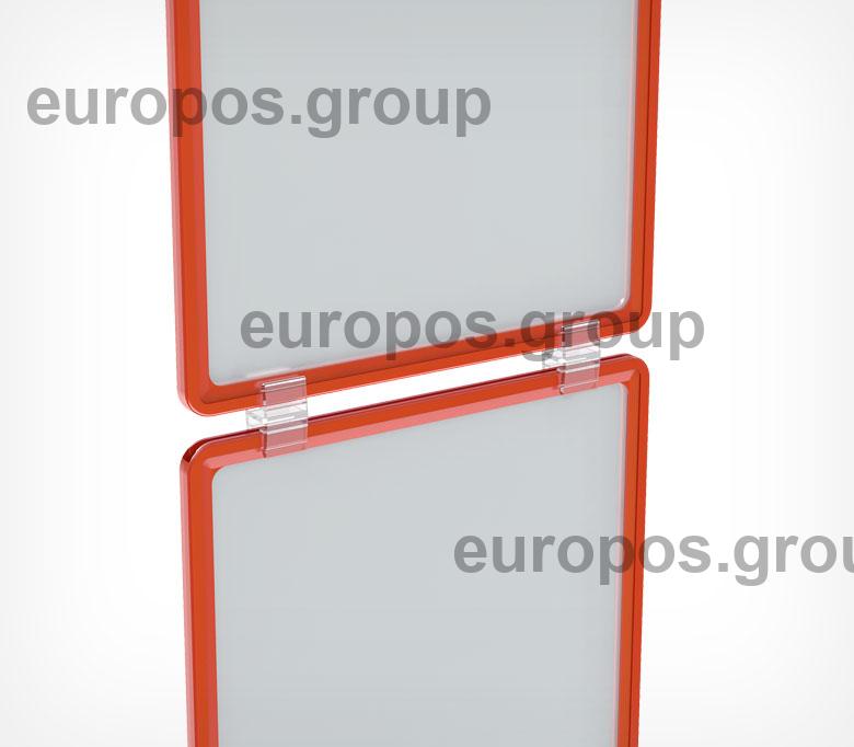 Клипса для подвешивания пластиковых рамок друг под другом. Закрепляется с верхней и нижней стороны рамки. Для подвешивания одной рамки необходимо использовать две клипсы. Рекомендуется при объединении рамок в структуры при их горизонтальном размещении. Изготовлена из прозрачного ударопрочного пластика.