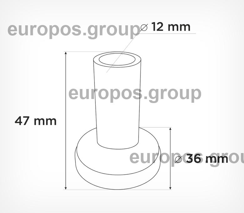 Диаметр основания изделия составляет 36 мм, высота - 47 мм, высота пенька 35 мм, отверстие под трубку диаметром 12 мм.