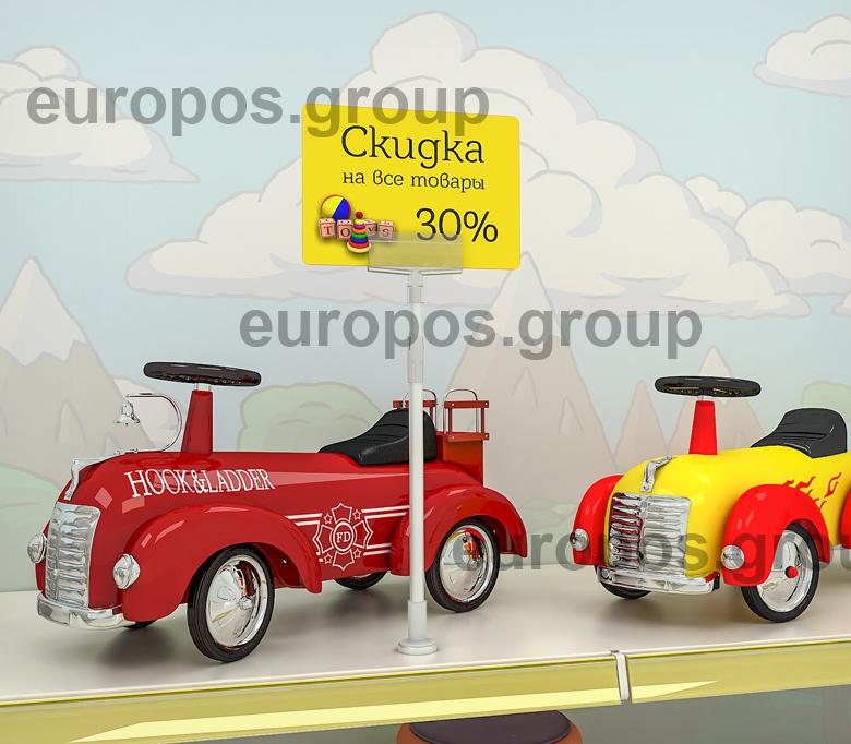 Магнитная подставка была разработана для надежной фиксации на металлической горизонтальной поверхности без необходимости высвобождать место для размещения широкого основания стойки, например, на стеллаже. Стойка на основе MAG-STD-BASE может обозначить акционный товар, специальную цену, отдельную категорию товара.