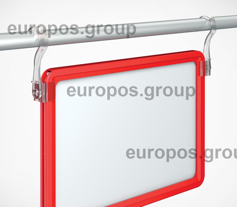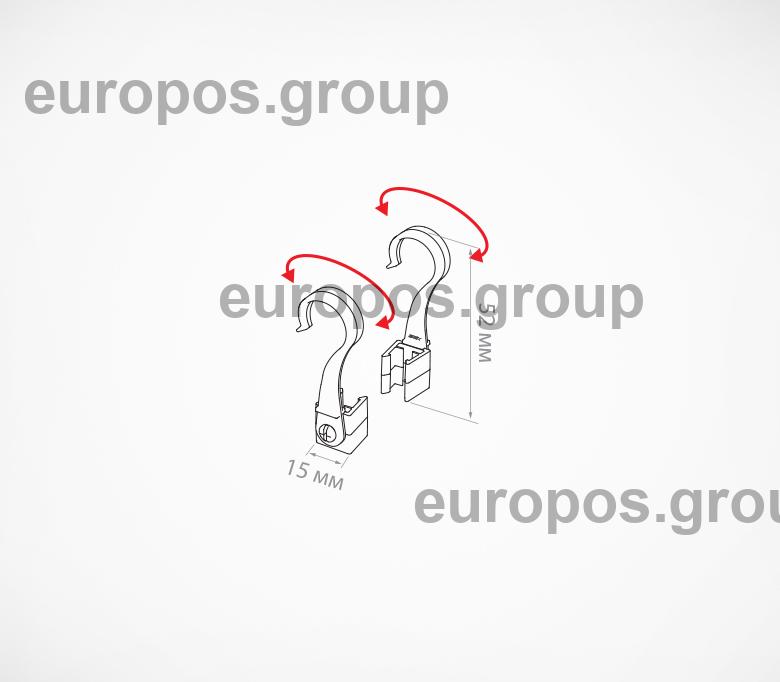 Крючок с подвижным основанием для подвешивания пластиковых рамок на трубу Ø20 мм. Также позволяет подвесить рамку на металлические покупательские корзины и подвесные профили. Закрепляется с боковой стороны рамки. Для подвешивания одной рамки необходимо два крючка разной ориентации (левый и правый). Изготовлен из ударопрочного пластика.