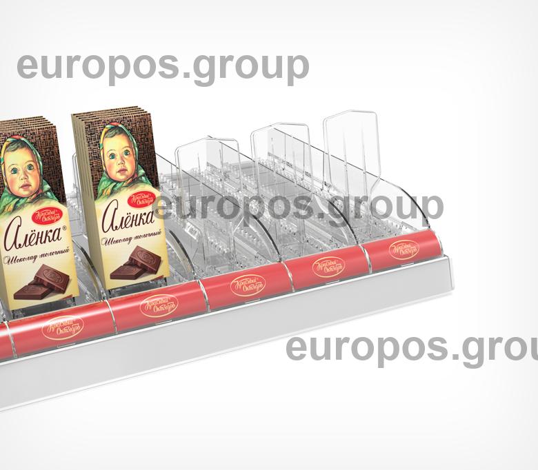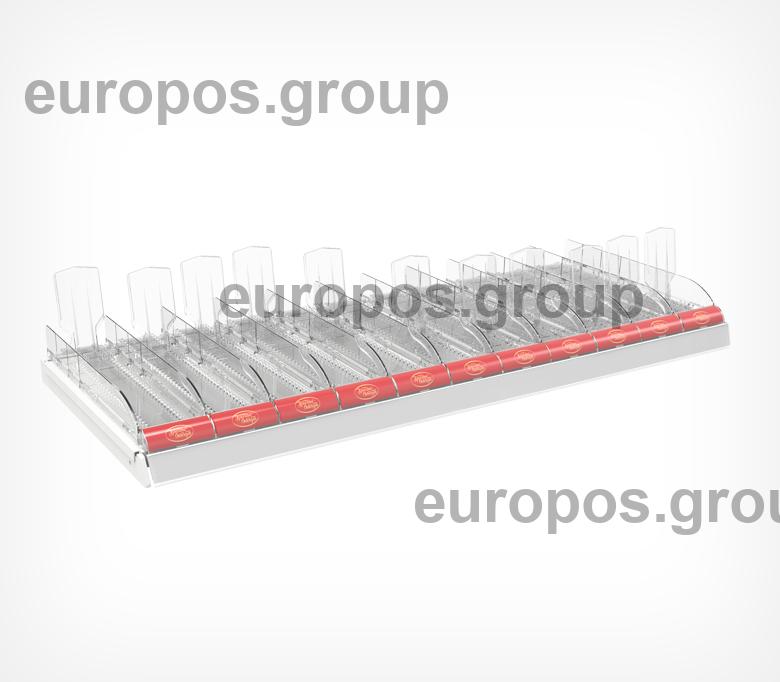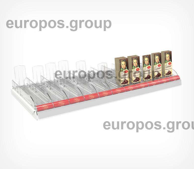 Набор из 11 лотков для выкладки плиточного шоколада. Поставляется в собранном виде, благодаря этому установка на полку занимает за считанные секунды. В набор включены цветные вставки во фронт для организации сегментации на полке по типам шоколада. Под полки размером 1000.