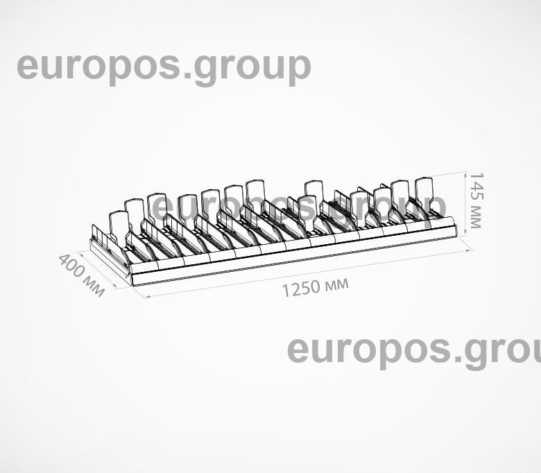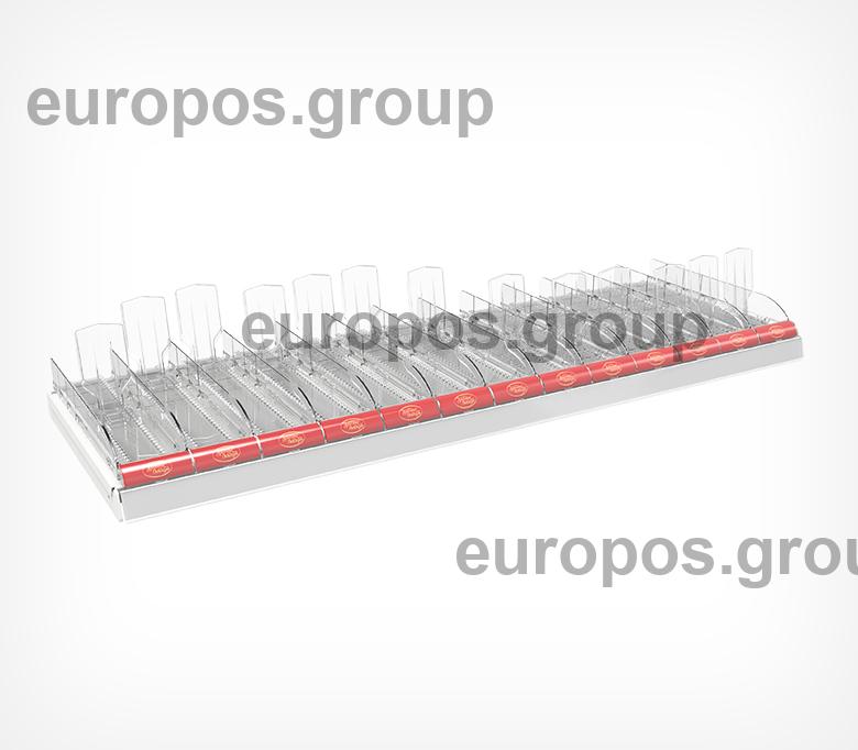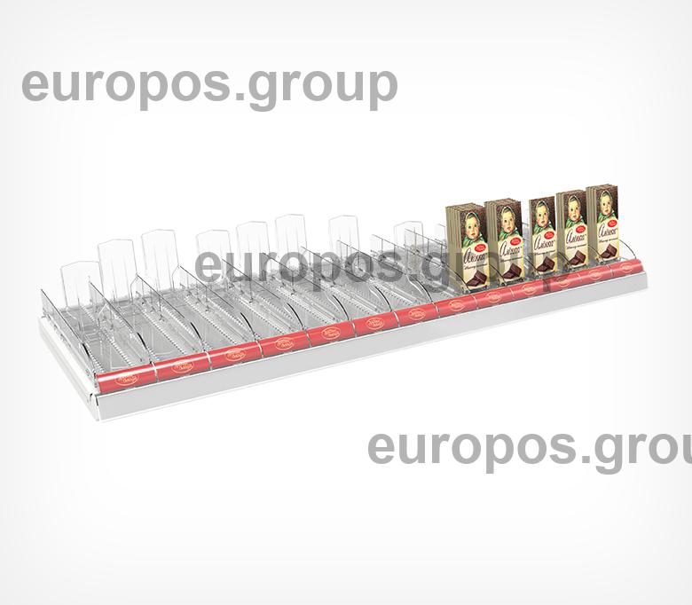 Набор из 13 лотков для выкладки плиточного шоколада. Поставляется в собранном виде, благодаря этому установка на полку занимает за считанные секунды. В набор включены цветные вставки во фронт для организации сегментации на полке по типам шоколада. Под полки размером 1250мм.
