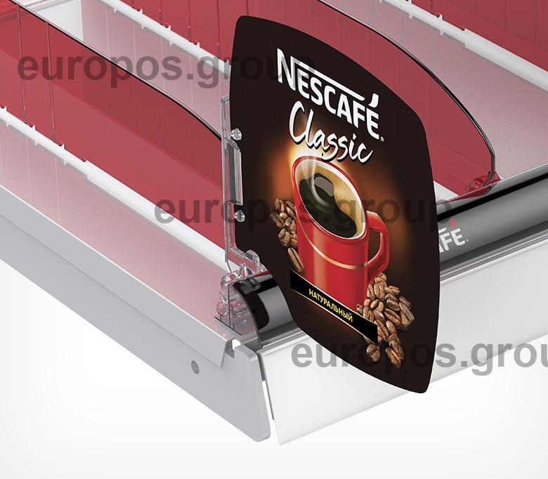 Крепится на полку при помощи профиля PRO30 или T-RAIL. Позволяет разместить стоппер на полке и дополнительно выделить продукт, представить информацию об акции. Для крепления в стоппере необходимо сделать дополнительно отверстия. Толщина вставки от 0,1 до 0,7 мм