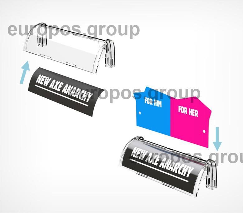 Клипса PRO CLIP крепится на полку при помощи профиля PRO30. Позволяет выделить продукт на полке посредством печатной вставки. Размер рекламной вставки –124х40. Вставка может быть сменной.