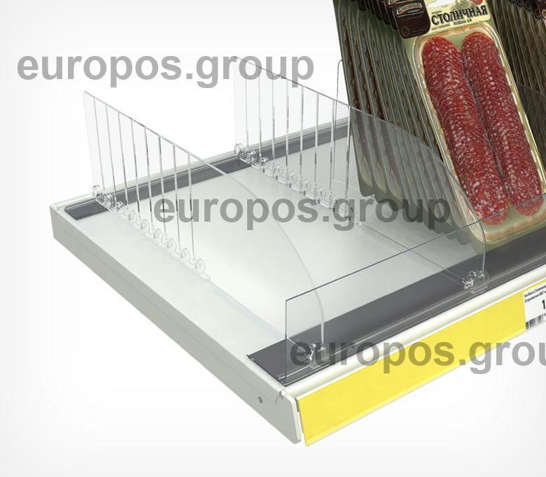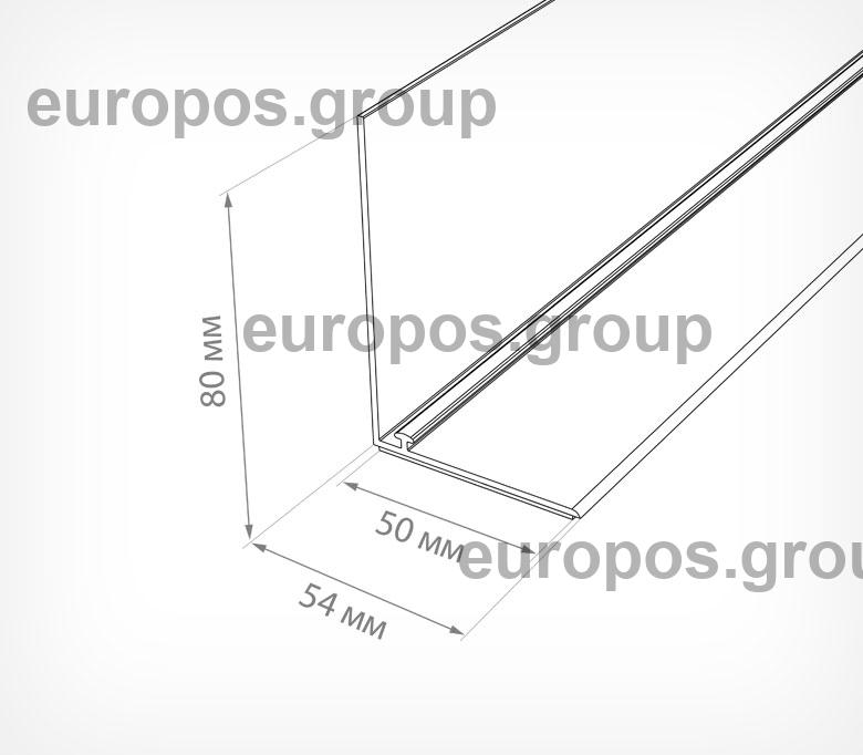 L-образный профиль высотой 80 мм и усиленным основанием. Предназначен для крепления разделителей, толкателей и ребристого профиля для задней опоры. Является также передним ограничителем высотой 80 мм. Крепится на магнитную ленту, идеально фиксирующую его на металлических полках.